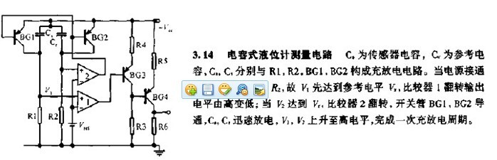 電容式料位計原理是插入料倉中的電極與料倉壁之間構成電容器,當倉內物料料位變化引起電容量的變化時,通過轉換電路得到相應的控制信號。因為電容量是連續變化的,因此該料位計可以用作連續式料位測量,也可用作料位開關,作為報警或喂料、卸料設備的輸入信號。該料位計有造價低、無機械磨損、安裝和維修方便等特點。傳統的方式是通過調頻振蕩電路實現電容量到頻率的轉換,又經限幅放大及鑒頻器的線性化,得到相應的電壓或電流信號。若使用一段時間后電極(探頭)上粘有物料,則往往會導致控制器誤動作,現已由傳統的檢測電容量發展為檢測探頭與倉壁間導納的方式。